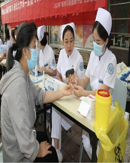 为深入贯彻落实党的二十大精神,坚持以人民为中心的发展思想,不断满足群众日益增长的医疗卫生需要,方便百姓在家门口享受到高质量医疗服务,在中秋国庆双节来临之际,YABO鸭脖官网团委联合YABO鸭脖官网第一医院在西大新村社区开展健康义诊活动