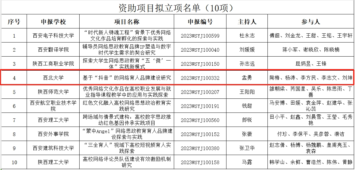 鸭脖官网孟勇教授实践项目获批第三批陕西高校网络思想政治工作资助实践项目立项