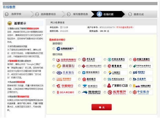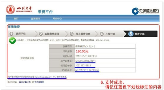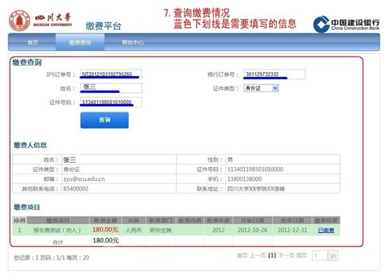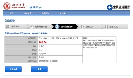从2013年开始,3003新葡平台采用考生网上支付的方式收取博士研究生入学统考的报名考试费,缴费网址:http://scu.epaybest.com,相关注意事项参照网上缴费注意事项(点击打开链接),具体缴费流程如下:
