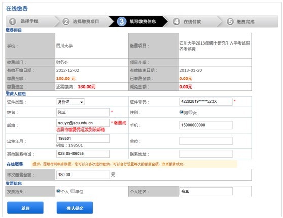 填写缴费个人信息: