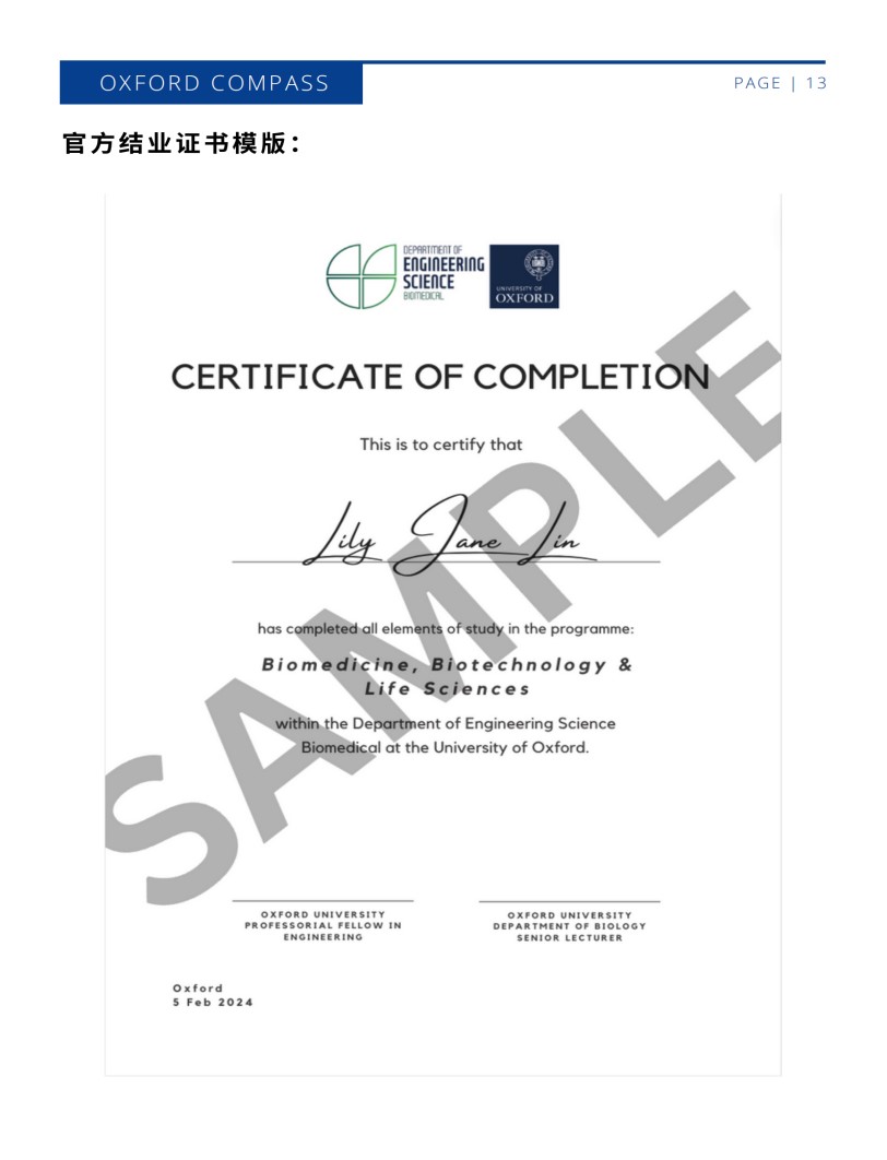 探索牛津风景如画的环境,探索科学创新的未来。 揭开生命科学的奥秘,提高批判性思维分析能力,并参与丰富的英伦文化活动,不仅可以通过参加讲座和辅导来培养学术技能,还可以通过直接参与研究项目来培养解决问题和团队合作的技能。在课程结束时,学生以小组形式向同学展示他们的学习成果。顺利完成该课程后,学生将获得证书和个人报告,认可并跟踪他们在整个课程期间的进步。