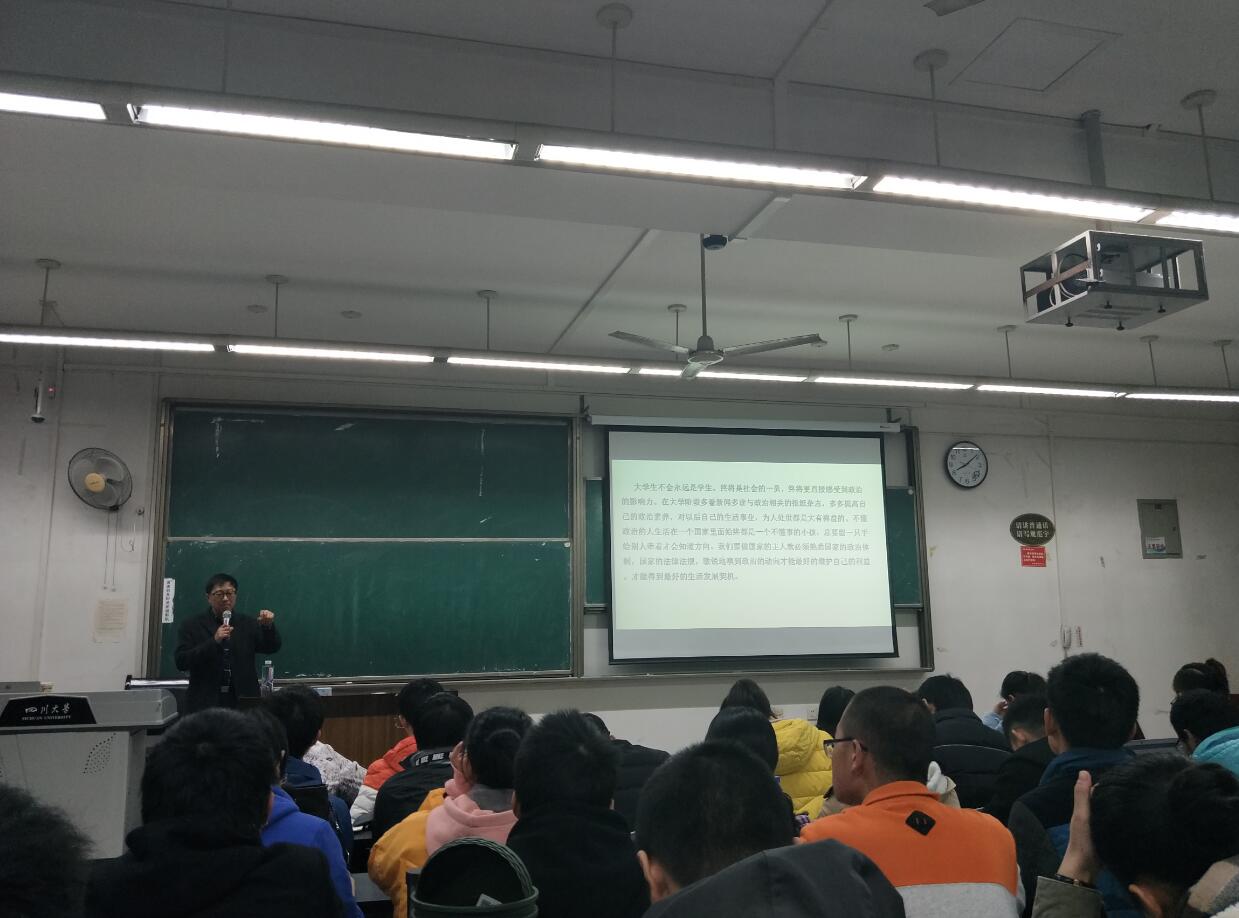为使大学生切实学习“十九大”精神,明确自身的成长目标与发展方向,2017年12月17日晚19时,3003新葡平台党委书记林宏辉教授在一教B座407教室,以“大学生如何学习十九大精神”为主题,给学院同学作了一次充满激情的宣讲。在课上,所有同学都聚精会神,认真聆听。