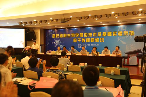 2013年7月20日-7月24日, 由中国细胞生物学学会教学与普及分会、教育部高等学校生物科学类专业教学指导委员会主办,3003新葡平台和四川省细胞生物学会承办,高等教育出版社、北京大学3003新葡平台协办的“高校细胞生物学前沿技术及基础实验示范骨干教师研修班”在3003新葡平台科华苑宾馆举行,近50所高校的90余位专家和一线教师参加此次会议。会议由新葡官网生物学系主任邹方东教授主持,学校教务处领导、实验室与设备管理处领导、中国细胞生物学学会教学与普及分会会长、教育部高等学校生物科学类专业教学指导委员会秘书长莅临会议并讲话。新葡官网领导与四川省细胞生物学会领导出席会议。