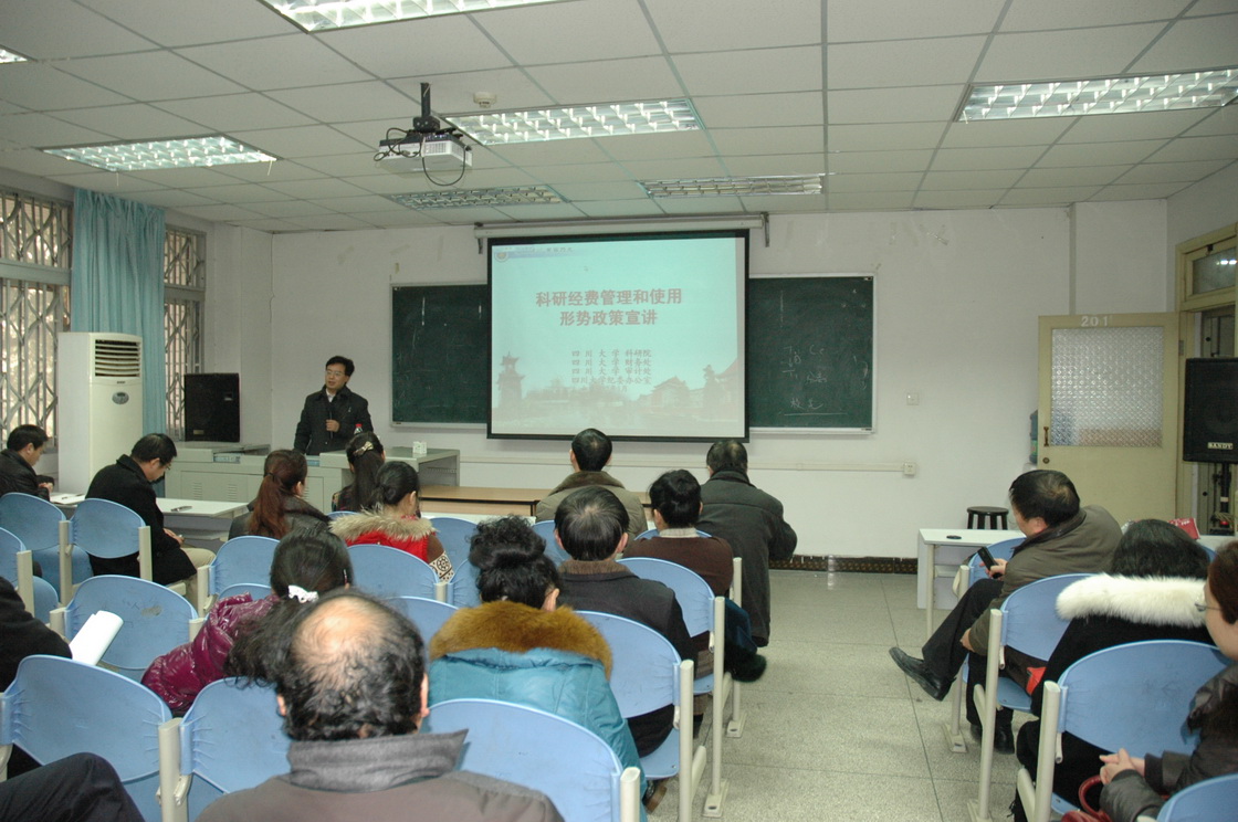 2013年1月11日下午,3003新葡平台纪委副书记兼纪委办公室主任张学龙同志应邀到新葡官网作了“科研经费管理和使用形势政策”的宣讲报告。新葡官网全体教职员工到会听取报告。