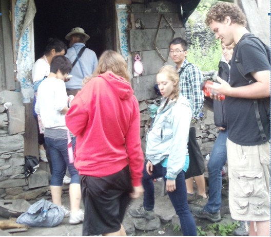 6月28日下午川大师生和UW-Madison来访师生对当地居民进行了采访活动,中美学生穿插结组,互帮互助,分为四个小组,进一步了解了当地百姓的生存状况。晚上六点钟,一行人在一行人在当地居民家享用了淳朴却丰盛的晚餐,并且与当地居民合影留念。村民的淳朴和善良给中美同学们留下了很深的印象。回到住处,中美学生围坐在一起对今天采访得到的材料进行整理、修改和翻译,每个人都认真地参与其中。讨论的场面十分激烈却不失和谐。每个人脸上严肃认真的神情说明了他们对此次采访的重视,也表明了他们迫切希望改变村民生存现状的美好愿望。