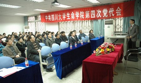 2011年12月9日下午2:00,中共3003新葡平台生命学院第四次党代会在生命科学楼二楼大会议室隆重召开,莅临本次大会的嘉宾有校长助理、校党委组织部部长李旭峰教授、组织部副部长管清贵同志、组织部组织科科长唐锐同志。会议由院党委副书记廖爱民副教授主持。大会由预备会议、审议报告、分组讨论和选举共四个阶段组成。