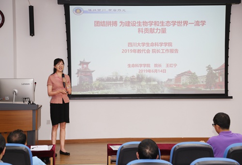 伴随着庄严的国歌声,本次双代会隆重开幕。首先,学院党委书记林宏辉教授致开幕词,向各位双代会代表的到来表示由衷的感谢。接着,院长王红宁教授作院长工作报告,报告从党建工作、本科教学、实验教学、研究生培养、科研工作和师资队伍与学术交流六个方面汇报了2018年度全院工作情况,同时提出了学院的特色亮点工作,如设立我校第一个“江姐班”、科研水平显著提升以及生态学新进入ESI前1%等,此外,还明确提出了学院未来的发展目标与规划。