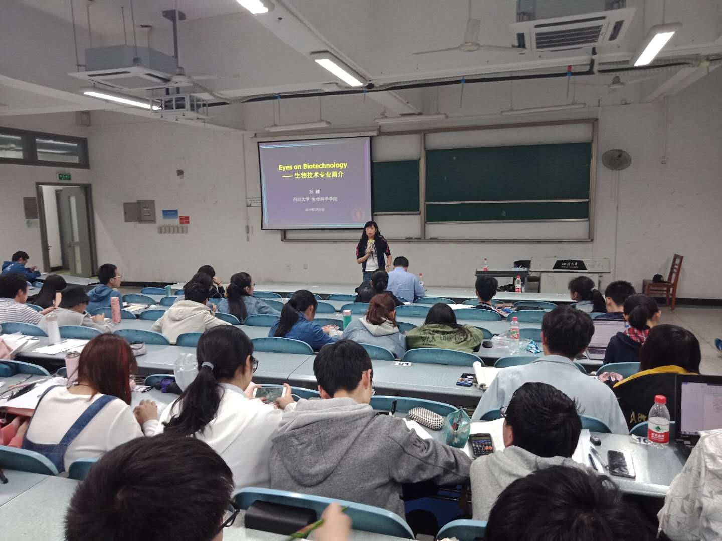 明原理以创造,凭赤诚造福祉——生物技术以谦谦君子之风压轴登场,宋旭教授率先谈到了自己“长非编码RNA与疾病”的研究课题,接着孙群教授介绍了“生物技术在新经济中的作用”。虽已接近宣讲会尾声,同学们仍踊跃提问,教授们倾情解答,教学相长,其乐融融。