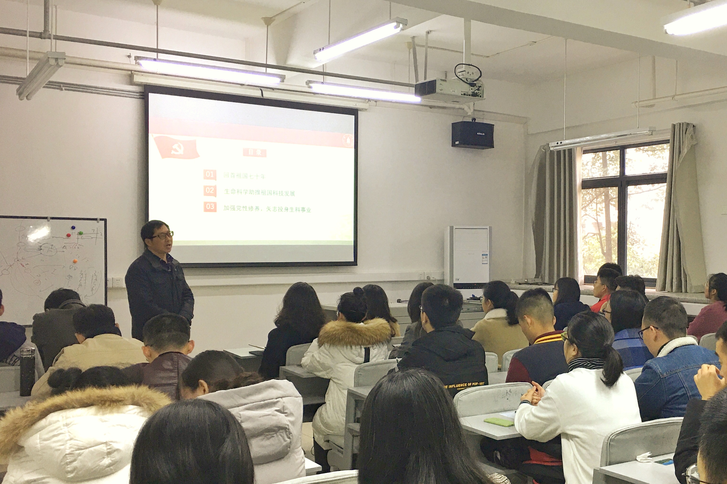 2019年11月20日下午,3003新葡平台党委书记林宏辉教授于生命科学楼B215会议室为广大研究生党员作了主题为《在生命科学领域奋力拼搏,勇做担当民族复兴大任的时代新人》的专题党课。