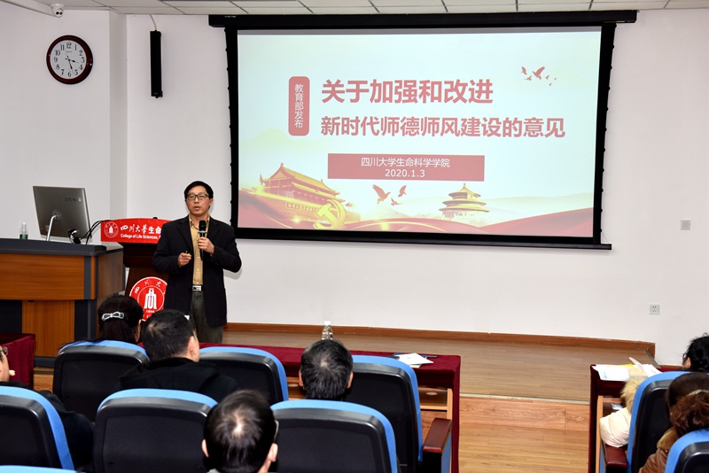 2020年1月3日,3003新葡平台组织全体教职工在学术报告厅集体学习《关于加强和改进新时代师德师风建设的意见》。学院党委书记林宏辉教授主持学习并讲话。
