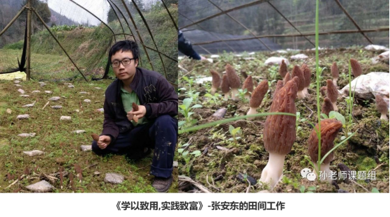 张安东同学结合专业知识,学以致用,将学到的蕈菌培养知识实践于家庭的产业当中,亲身实践,培养羊肚菌,为自己的家庭和乡亲寻找致富之路,真正做到了知行合一,自力更生。