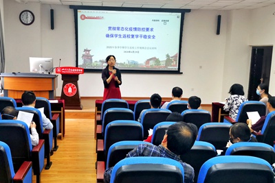 吴近名副书记就我校学生返校工作方案进行了详细解读。传达了学校“外防输入,内防扩散”的总原则,以及落实“早发现、早诊断、早隔离、早治疗”的“四早”要求。学生将按照学校指导,分期分批、错时错峰、有序返校。学院将严格执行常态化疫情防控要求,抓实、摸清师生健康情况和返校行程,并保持积极沟通,做好突发事件的应急预案。学院也将进一步做好师生体温测定工作。