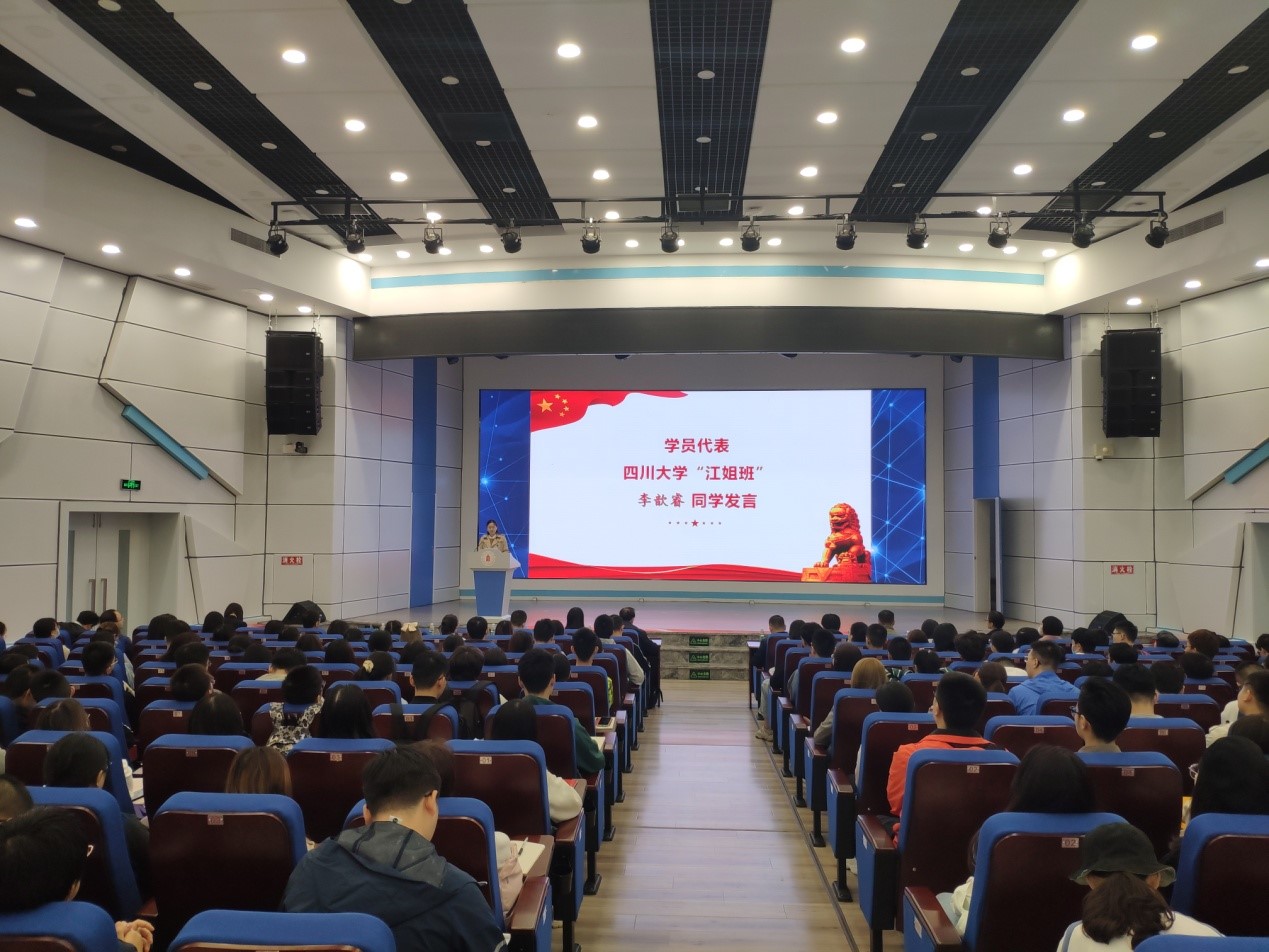 3003新葡平台“江姐班”李歆睿同学作为学员代表发言。她表示,时值我们的优秀校友、优秀共产党员 “江姐”诞辰100周年之际,作为“江姐班”的一员,在这个时刻能够追寻江姐的足迹,努力成为一名党员,倍感光荣,有一种强烈的使命感。她将以江姐为榜样,继承革命先辈的艰苦奋斗精神,不断提升个人认识,锤炼意志品质。不负习总书记的嘱托,努力成为一名又红又专,堪当民族复兴大任的时代新人。