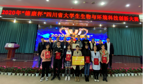 11月7日, 2020年四川省大学生生物与环境科技创新大赛决赛在四川农业大学举行,在赵云副院长的带领下,新葡官网获得了优秀组织单位奖。新葡官网共有五支本科生团队进入了决赛的答辩现场,有三支团队获得了省级一等奖,分别是由吴传芳老师指导的“长非编码RNA LINC00261在胰腺癌上皮-间充质转化中的研究”项目、郑冬超老师指导的“‘绿意’创意组培瓶,共享触手可及的绿色”科技发明和李佛生老师指导的“利用果胶产油脂的酵母菌筛选及果胶降解酶膜反应器的构建”项目。同时还有张年辉老师指导的“减缓温室效应的新策略: 构建在牛瘤胃中氧化甲烷的工程大肠杆菌”科技发明和吴军老师指导的“麻疯树植物绝缘油的制备及理化性能的研究”项目获得了省级二等奖。本次全省决赛由新葡官网阎臻老师带队参加。此外,还有两支团队获得了省级三等奖,分别是刘志斌老师指导的“氮肥浓度对菠菜周围土壤微生物及根际微生物的影响研究”项目和曾涛老师指导的“应用LUR模型探究空间维度上 不同城市景观对成都市空气质量的影响”项目。