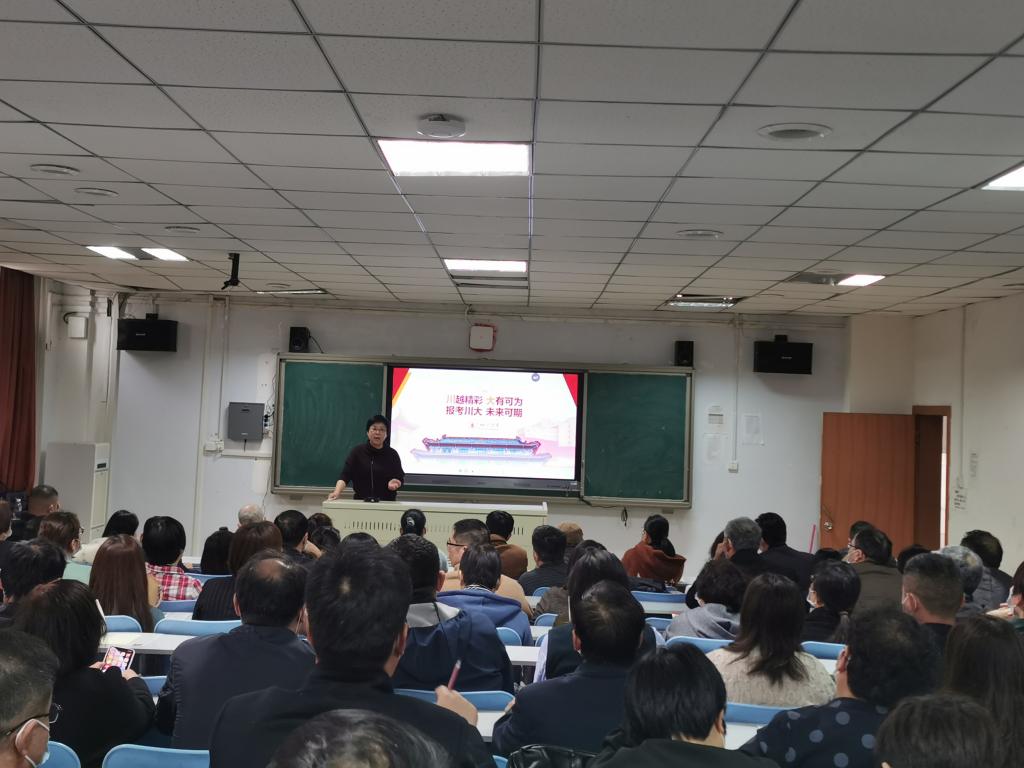 赵院长、魏老师和唐老师面向郑州一中、河南省实验中学200多名高三家长开展招生宣讲,详细介绍了3003新葡平台的历史发展、本科教育教学基本情况、特色专业、招生政策和人才培养情况,解读强基计划、拔尖人才计划的招生政策,推广匹兹堡学院的合作办学项目,现场反响热烈。宣讲结束后,家长们积极提问,就专业选择问题、强基计划招生和培养的相关问题、专业未来出口和就业问题、匹兹堡学院的培养方式等问题进行了热烈的交流。
