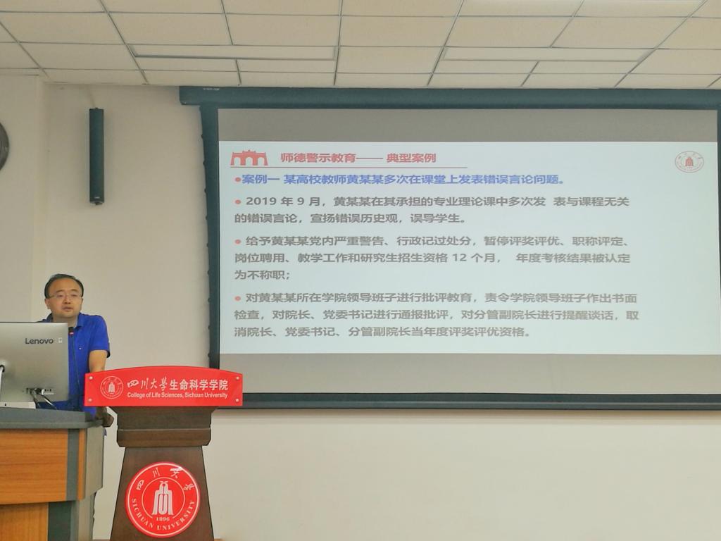 党的十八大以来,习近平总书记从国家繁荣、民族振兴、教育发展的大局出发,深刻阐释了教育工作和教师工作的极端重要性,对师德师风建设提出了一系列的论述,明确了成为一名党和人民满意的好教师要做到“三个牢固树立”“四有”“四个引路人”和“四个相统一”。教育部也先后出台系列文件以加强高校教师师德师风建设。思想政治、师德师风和业务能力是学院教师队伍建设的三个重要方面,其中师德师风是教师队伍建设、教师素质评价、教学评价的重要抓手。学院党委始终将教师的师德师风建设放在教师队伍建设的首要位置,对教师失范行为零容忍。学院全体教师和各党支部要深入学习“习近平总书记关于师德师风建设重要论述摘编” 和《高校教师职业行为十项准则》等师德师风相关文件,提高政治站位,真正把教书育人和自我修养结合起来,时刻自重、自省、自警、自励,自觉以德立身、以德立学、以德施教、以德育德。