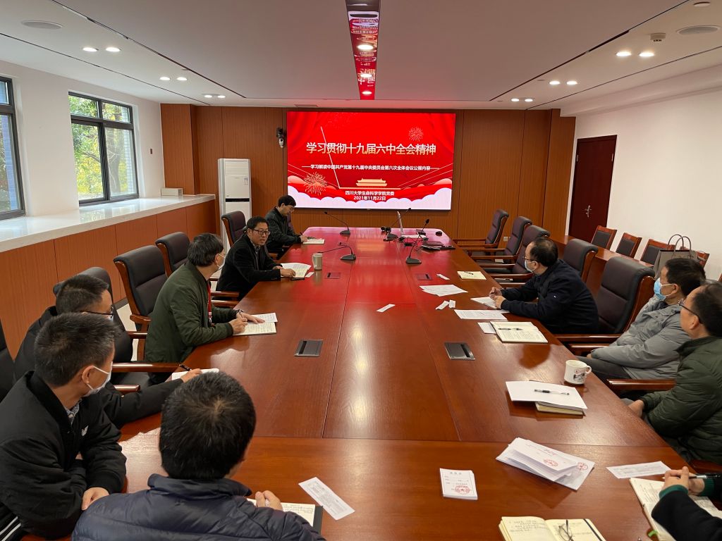 11月22日,3003新葡平台党委理论学习中心组开展十九届六中全会精神专题学习。全院党政班子成员、党委委员和教师支部书记参加了本次学习。