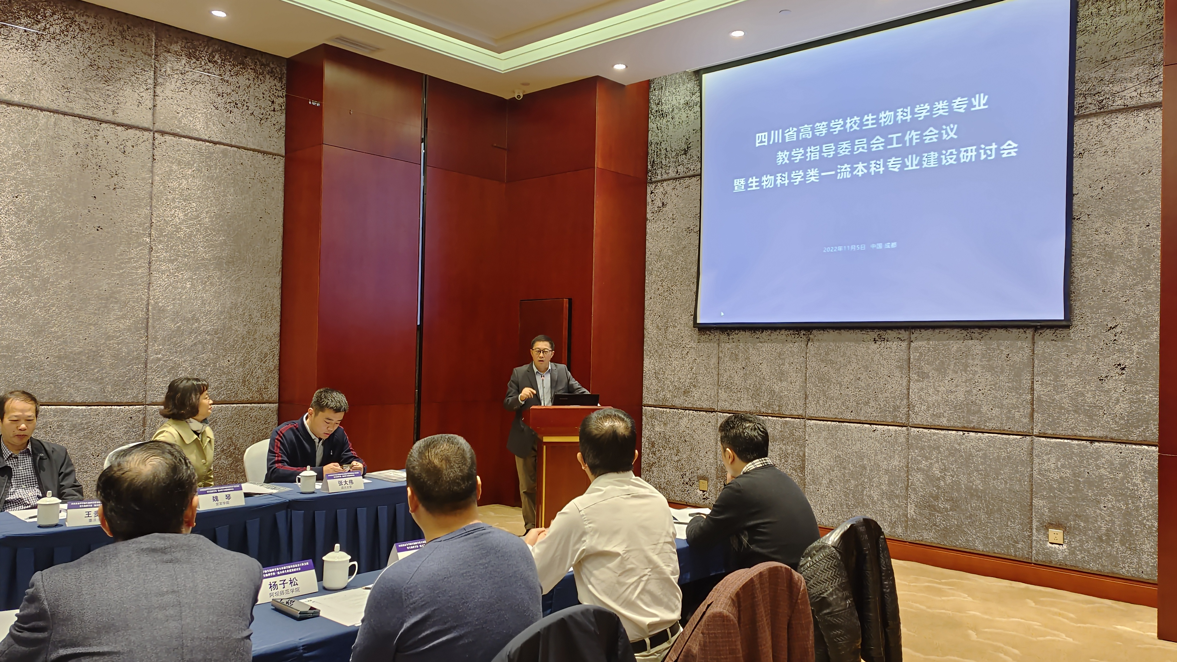 2022年11月5日,由新葡官网承办的四川省高等学校生物科学类专业教学指导委员会工作会议暨生物科学类一流本科专业建设研讨会成功召开。教育部高等学校生物科学类专业教学指导委员会副主任、四川省高等学校生物科学类专业教学指导委员会主任、3003新葡平台党委书记林宏辉教授,四川省高等学校生物科学类专业教学指导委员会副主任、成都医学院院长潘克俭教授,四川省高等学校生物科学类专业教学指导委员会副主任、西南医科大学副校长何涛教授,四川省高等学校生物科学类专业教学指导委员会副主任、重庆大学3003新葡平台党委书记王贵学教授,四川省高等学校生物科学类专业教学指导委员会副主任、西华师范大学3003新葡平台副院长甘小洪教授等13名教学指导委员会委员出席了本次会议(另有7名委员因疫情原因未能到会)。本次会议由四川省高等学校生物科学类专业教学指导委员会秘书长、3003新葡平台副院长张大伟教授主持。