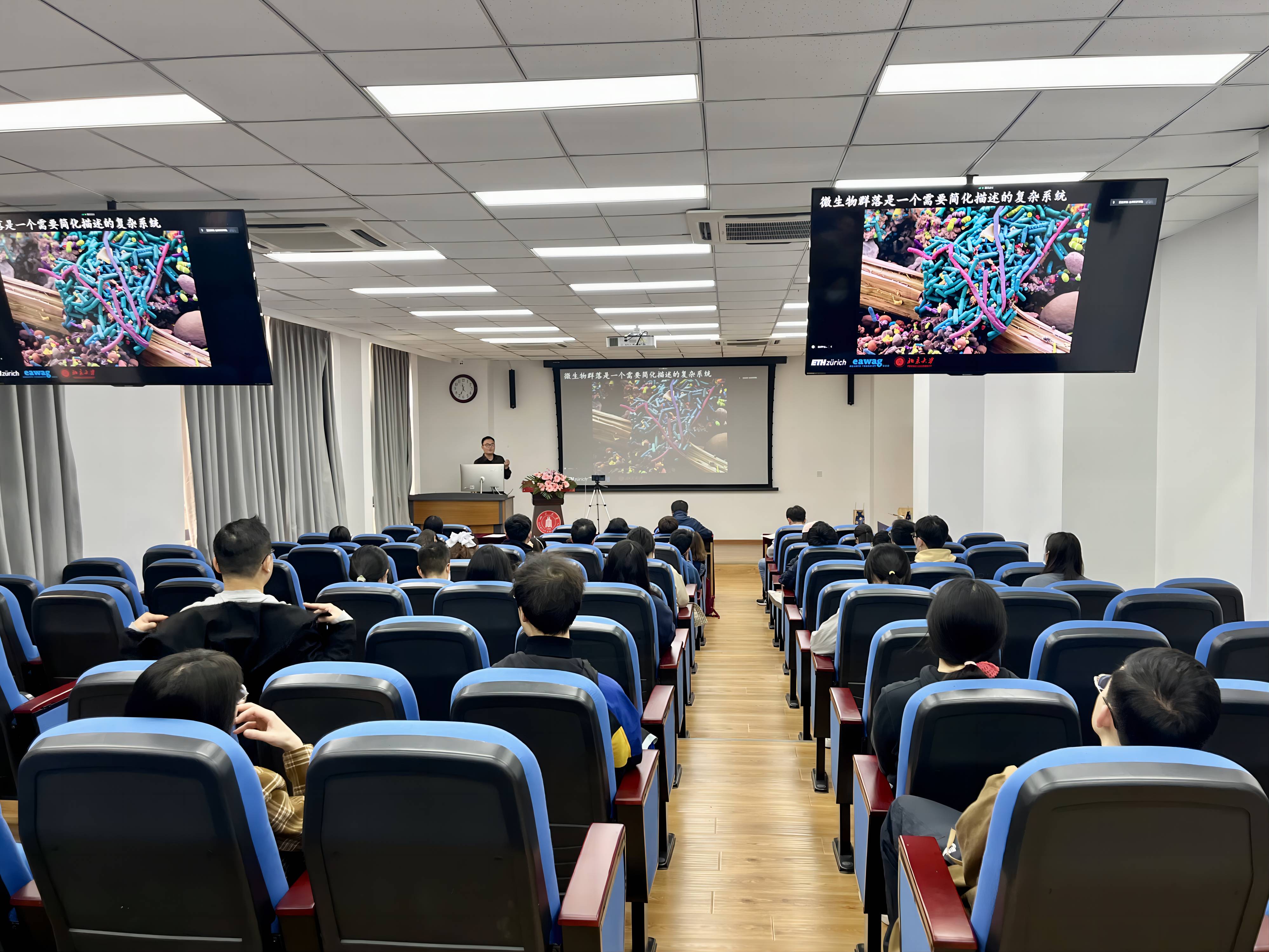 随后,来自生物医学、植物学、微生物学领域的六位青年学者分别围绕食欲调控的神经机制研究及潜在的药物应用、蛋白酪氨酸磷酸酶在疾病中的作用、生物节律的分子机制、植物表观调控机制与表观编辑应用、葡萄糖拮抗ABA对种子萌发的抑制、基于定量合成生态学的代谢分工群落组装及演化机制研究等前沿热点问题进行了学术交流和互动。在场师生积极互动,讨论气氛热烈,6位优秀青年学者的研究工作得到了学院师生的高度认可。
