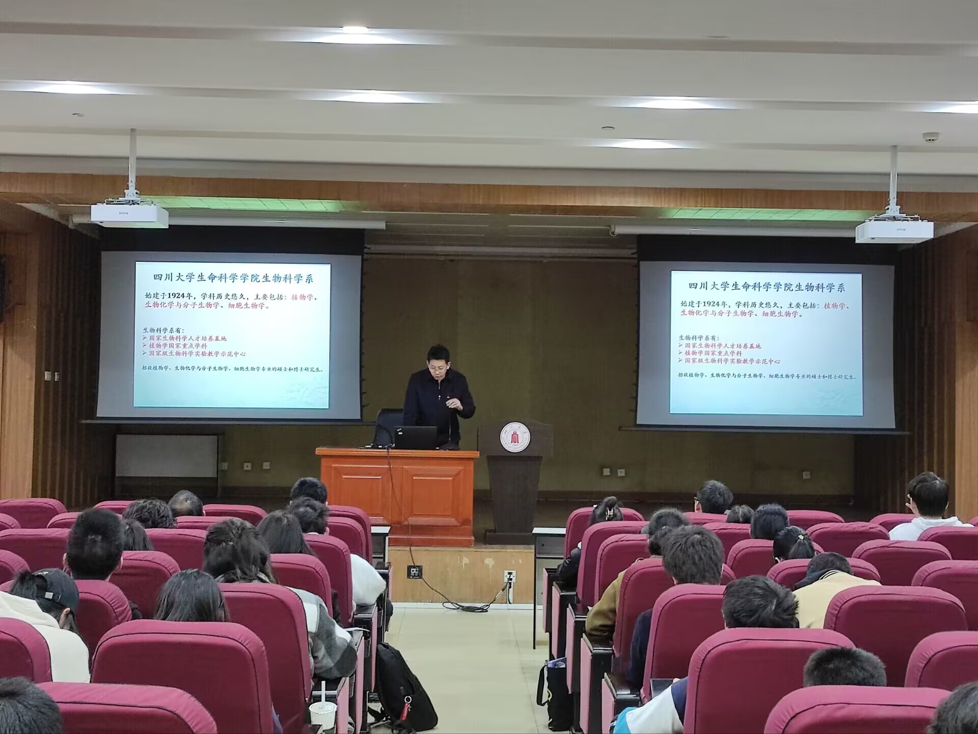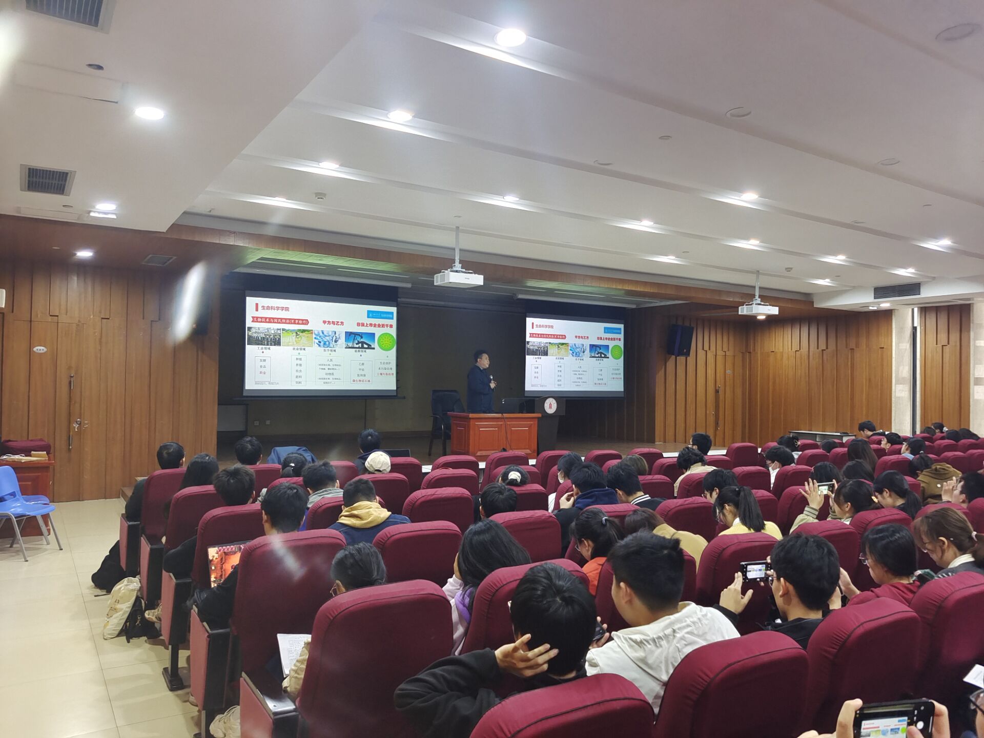 接着生物科学系开始宣讲。系主任肖朝文教授,系统地为同学们介绍生物科学系的深厚科研实力,易勇教授详细介绍了生物科学系的专业方向,并以自己的团队为例,为大家讲述在科学研究中学生所必备的科学思维和素养,让大家受益匪浅。易培珊教授结合自己本科的科研经历,以亲身经历为同学们如何确定自己的学习和研究方向提供参考。
