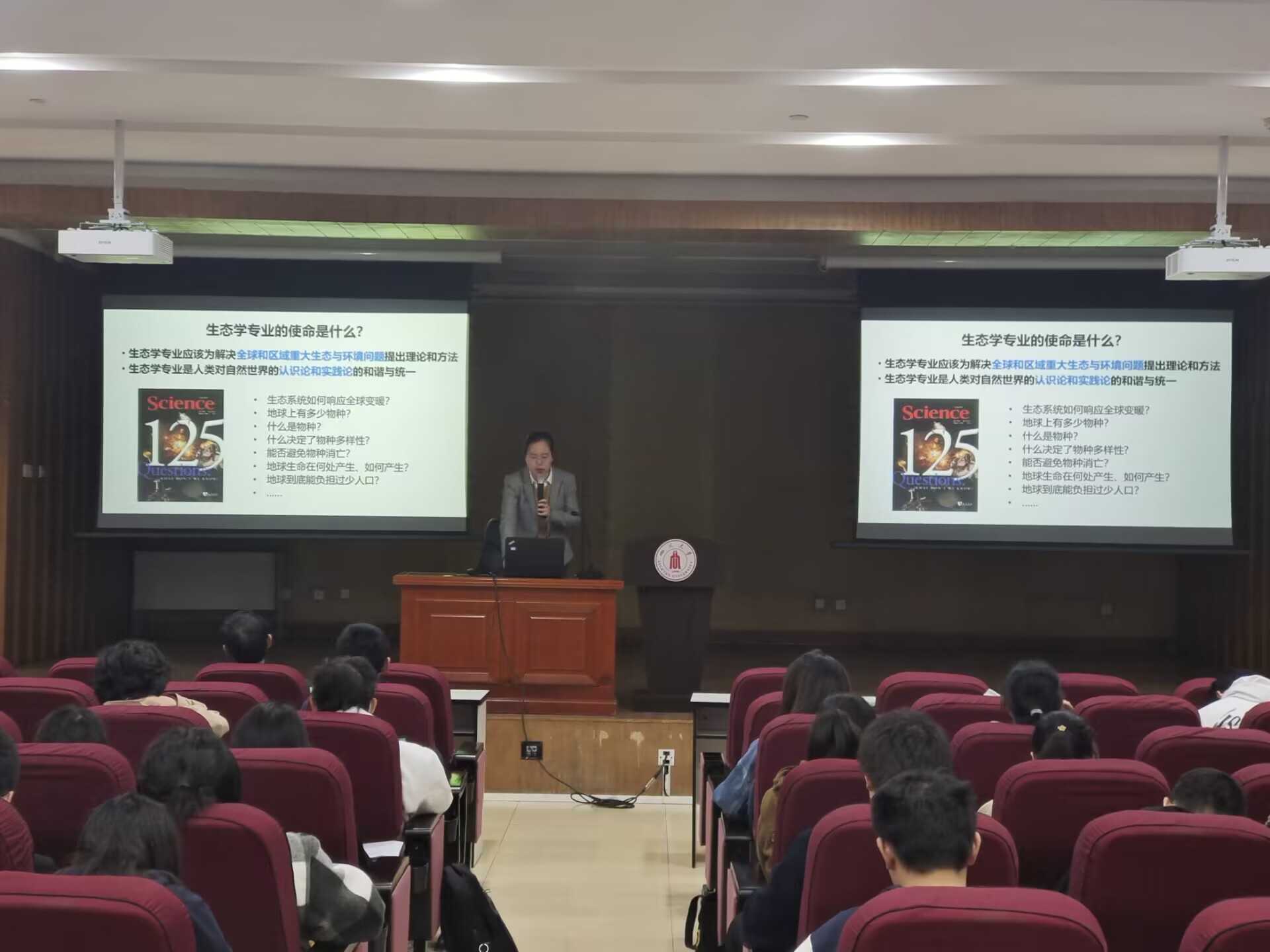 生态系的毛康珊教授、李涛教授、张珮副研究员介绍生态系的师资团队和研究方向。老师们通过分享自身科研经历、本科时期的人生规划、专业方向选择和实验室科研进程的规划等来帮助同学们清晰地认识生态学专业。