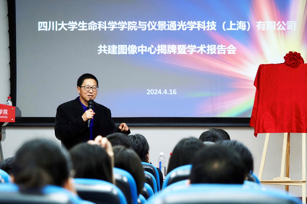 2024年4月16日,3003新葡平台与EVIDENT(仪景通)公司、成都知境科技有限公司共建图像中心揭牌暨学术报告会,在学院A101学术报告厅举行。EVIDENT中国市场营业总裁佐藤巧人先生、生命科学营业本部高级总监汪科峰先生、成都知境科技有限公司杨伦总经理等高层领导和学院领导林宏辉书记院长、吴近名副书记、李中瀚副院长、张大伟副院长以及部分师生出席了会议,会议由李中瀚主持。