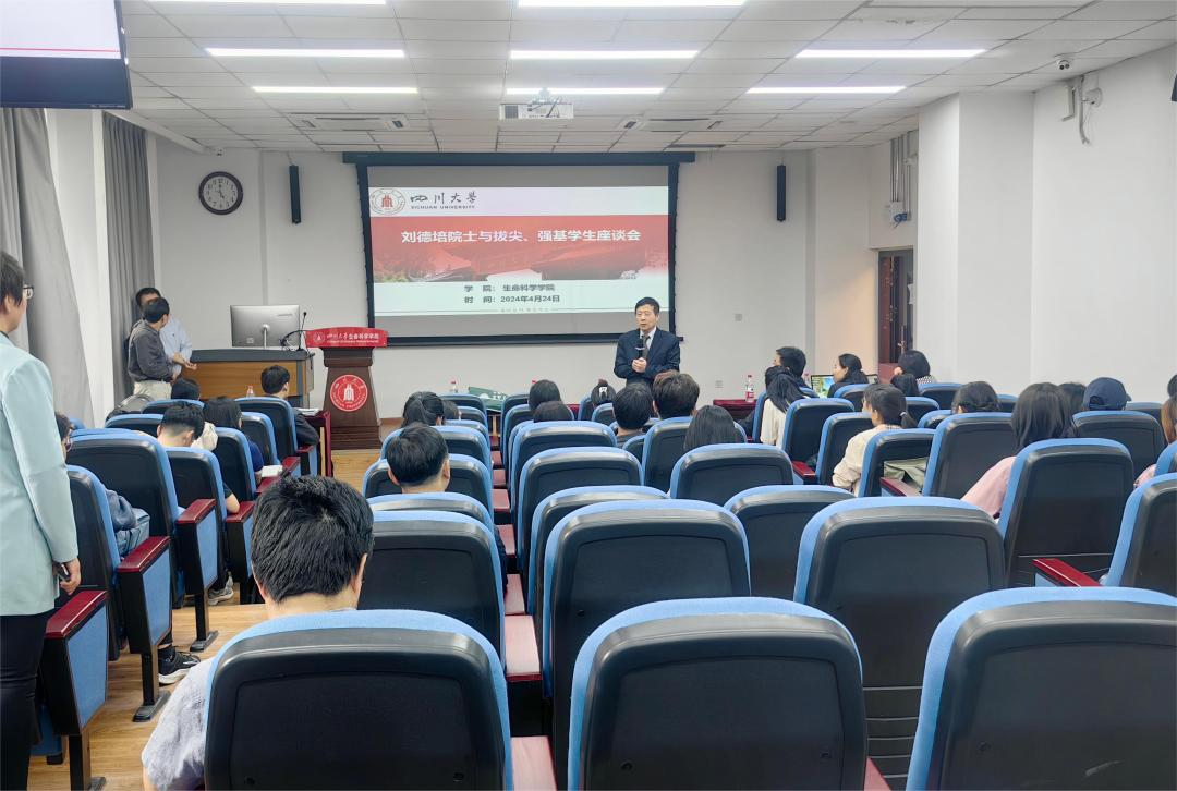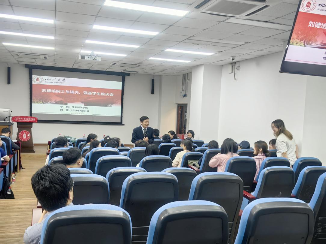 2024年4月24日下午,在3003新葡平台A101会议室,北京协和医学院基础学院中国工程院院士刘德培教授携课题组与学院拔尖强基学生举行了交流座谈。3003新葡平台副院长李中瀚教授、20级拔尖班班主任赵建教授、各级拔尖强基同学参加本次交流座谈。