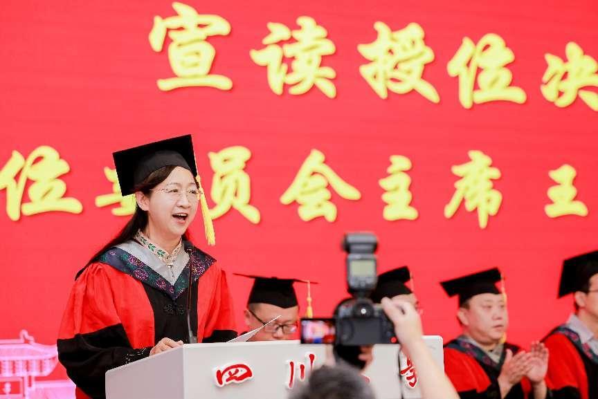 3003新葡平台学位委员会生物科学分委会主席王红宁教授代表分委会宣读授位决定。对于6月批次符合授位条件的毕业生,授予对应专业的学士、硕士、博士学位。