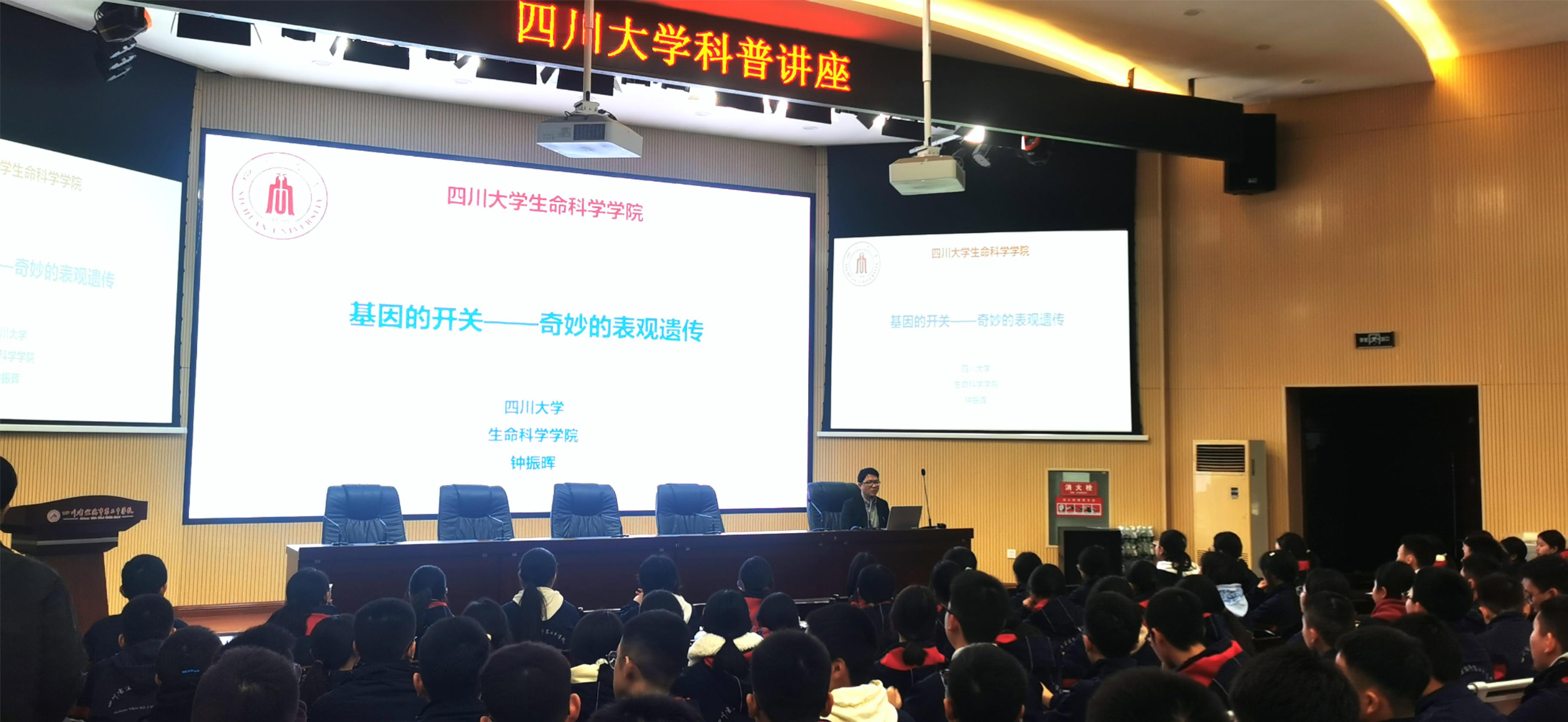 11月27日,3003新葡平台国家级青年人才钟振晖研究员赴宜宾一中和宜宾三中开展宣传活动。在宜宾一中,针对高三学生,钟老师详细介绍了学校的概况和优势特色,分析新高考背景下的选考科目策略和报考条件,还针对录取政策和注意事项进行了解读。在宜宾三中,针对低年级学生开展了以《基因的开关-奇妙的表观遗传》为主题的科普讲座,通过基因微观表达调控机制的介绍,向学生们揭示了生命科学的奥秘,激发了学生的学科兴趣。