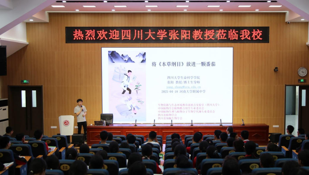 张阳老师前往河南大学附属中学开展科普讲座,200多名高一学子参与了讲座。他结合自身科研经历生动讲述植物研究的魅力,展示实验室的创新成果,并系统介绍3003新葡平台的历史沿革、师资力量、办学特色和科研方向,最后鼓励同学们立足自身兴趣与优势,理性选择专业和院校,找到属于自己的发展方向。
