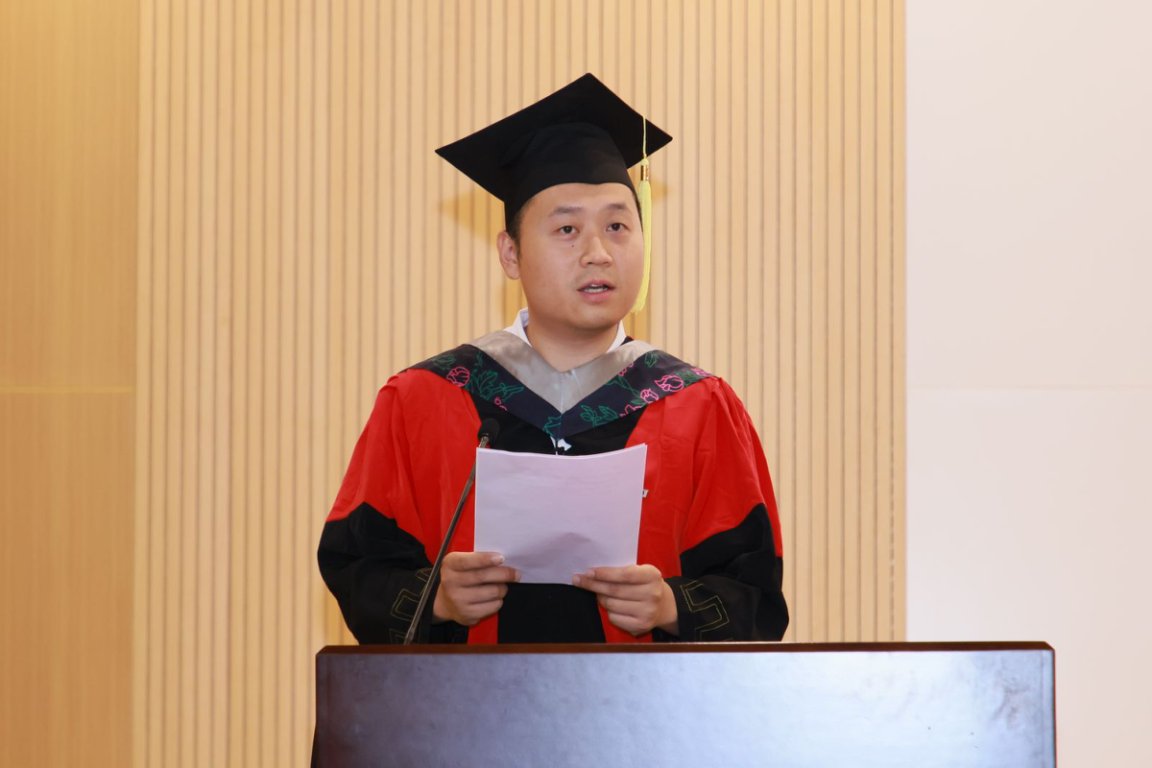 学子吐心声。3003新葡平台“十佳本科生”李翔宇同学作为本科毕业生代表发言。他分享了在求学和科研探索过程中的细腻感受和深刻思考,并祝愿所有同学:愿此去前路浩浩汤汤,而你我,心有静水,眼有星光;愿如江河万里,无问归期,只为奔赴山海苍茫;愿此行所往,自有乾坤成章,愿此生所学,温润世间万象。