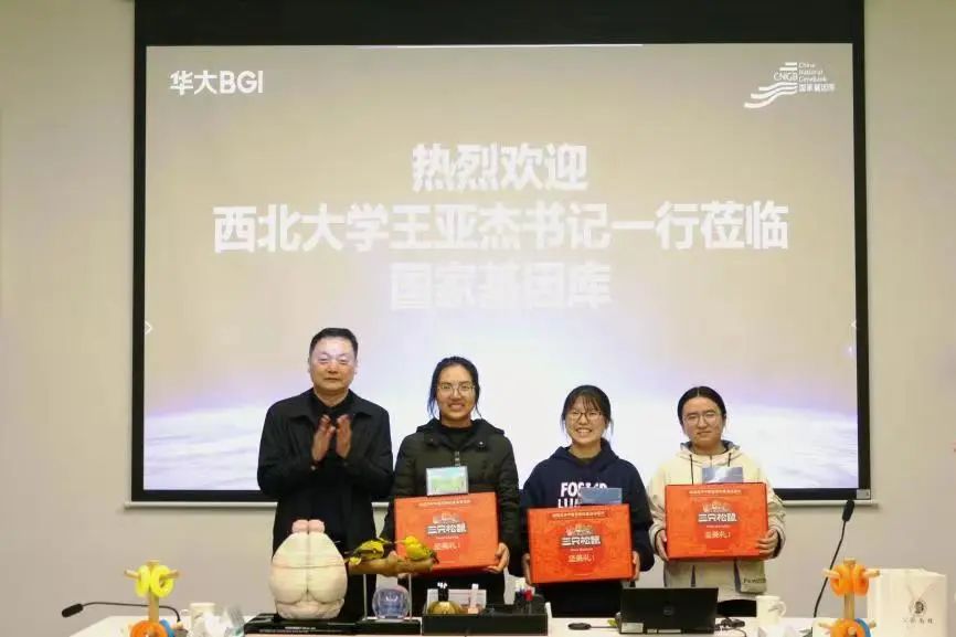 为华大创新班学生代表赠送新年礼物