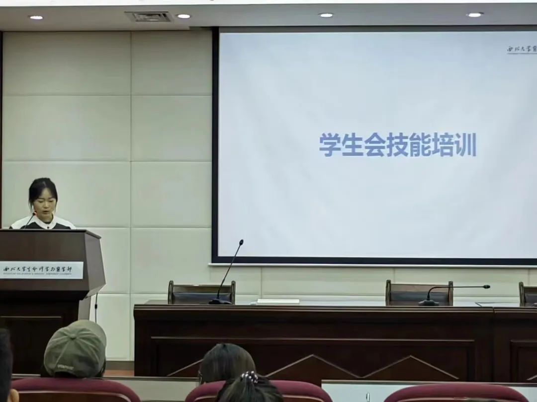 学生会主席团成员慕甜甜向学生会全体成员讲解了Word、Excel、PPT等软件的使用技巧,并就活动宣传流程、志愿证明出具、场地借用申请等学生会日常工作提出了严格要求。她还讲解了学生会的报账工作流程,希望通过此次培训,加强各成员对学生工作流程的规范意识,保证工作质量,提高工作效率。