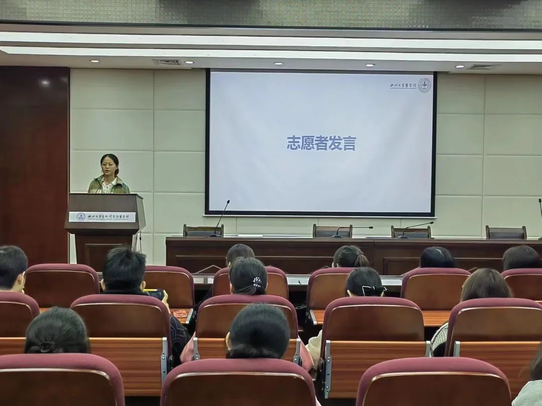 权益部工作人员王薛杨分别从第一学期、第二学期介绍总结了权益部的工作,并表示接下来会从部门建设、日常活动、具体活动、总结存档四个角度继续,同各志愿者继续努力。