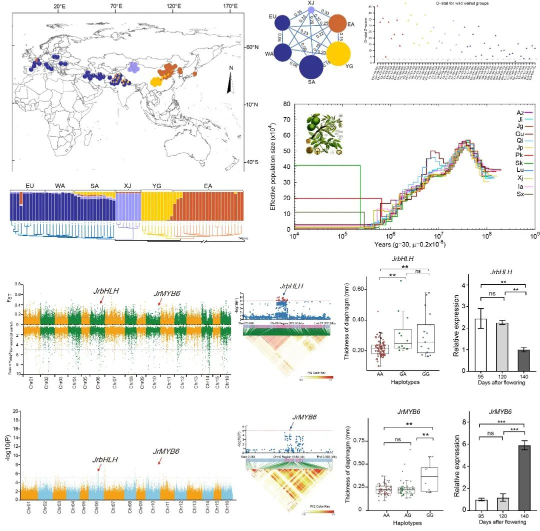 多年来,研究团队以世界重要经济树种胡桃属植物为研究模型,开展生态遗传进化和群体基因组学研究,将分子生物学技术和方法应用到森林树种生物多样性和演化历史研究中,更好地揭示了森林植物如何适应生态环境变化的遗传学机制,推动了林木遗传驯化机制及资源生物持续利用的分子基础研究。先后主持国家自然科学基金项目3项;YABO鸭脖官网“优秀青年学术骨干支持计划”1项;在Mol Phylogenet Evol、Mol Ecol Resour、Hortic Res、PLoS Genet、Ann Forest Sci等期刊发表论文60余篇, 出版英文专著1部,副主编国家十二五规划教材《植物学实验》1部;曾受教育部国家建设高水平大学公派研究生项目资助赴美国普渡大学(Purdue University)留学,入选陕西省首届“秦岭生态环保青年学者”,兼任陕西省植物学会副秘书长、西北植物学报青年编委等。