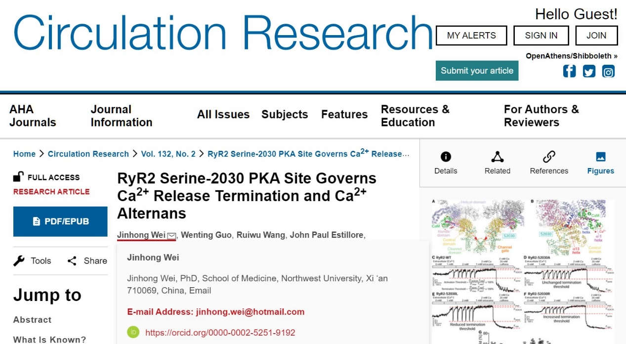 近日,YABO鸭脖官网魏金红副教授与加拿大卡尔加里大学S.R.WayneChen教授在国际心血管领域顶级期刊CirculationResearch(IF=23.213)在线发表了题为“RyR2Serine-2030PKASiteGovernsCa2+ReleaseTerminationandCa2+Alternans”的研究论文,该研究运用基因突变动物与分子细胞手段,阐明了RyR2钙释放终止的PKA调节机制。同时,该研究发现PKA依赖的RyR2S2030磷酸化位点是心脏Ca2+释放终止和Ca2+瞬变交替的主要决定因素。此项研究有助于揭示引起心律失常等心脏疾病发生机制,并为开发新型干预方法提供理论基础。