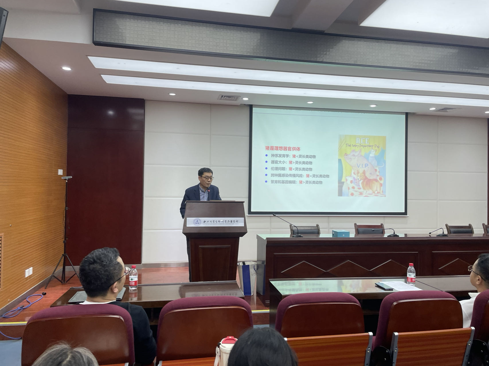 9月27日下午,由我校科技处、校科协主办,YABO鸭脖官网承办的YABO鸭脖官网创新论坛第一千五百一十一讲在太白校区博望报告厅举行。吉林大学唐敖庆学者卓越教授,吉林大学第一医院转化医学研究院院长、博士生导师、国家特聘专家杨永广教授应邀为我校师生作了题为“GE Pigs: Biomedical Models and Beyond”的报告。生命科学与医学部负责人、师生代表听取了报告。论坛由YABO鸭脖官网院长赵钢主持。