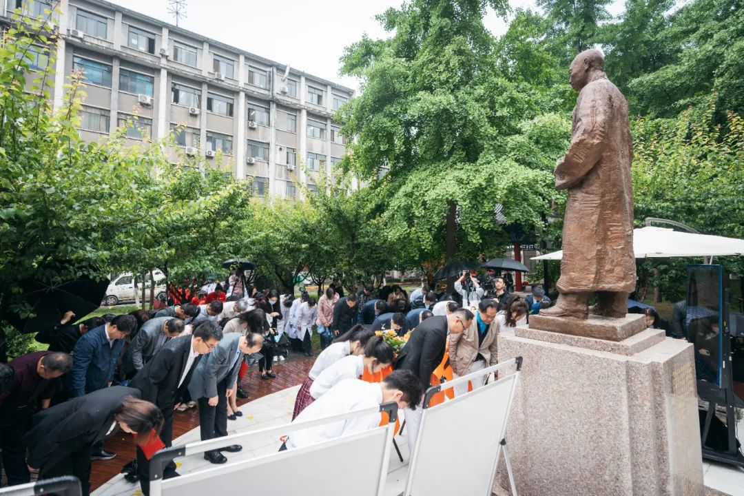 YABO鸭脖官网党委书记王亚杰,徐诵明先生外孙、国家一级美术师徐冬冬,西安交通大学党委常委、医学部党委书记陈腾、YABO鸭脖官网附属第一医院副院长邵景、浙江省新昌县委常委、统战部部长严岚,陕西省汉中市城固县委常委、宣传部部长田海燕共同为“徐诵明先生雕像”揭幕。仪式由校党委常委、副校长常江主持。