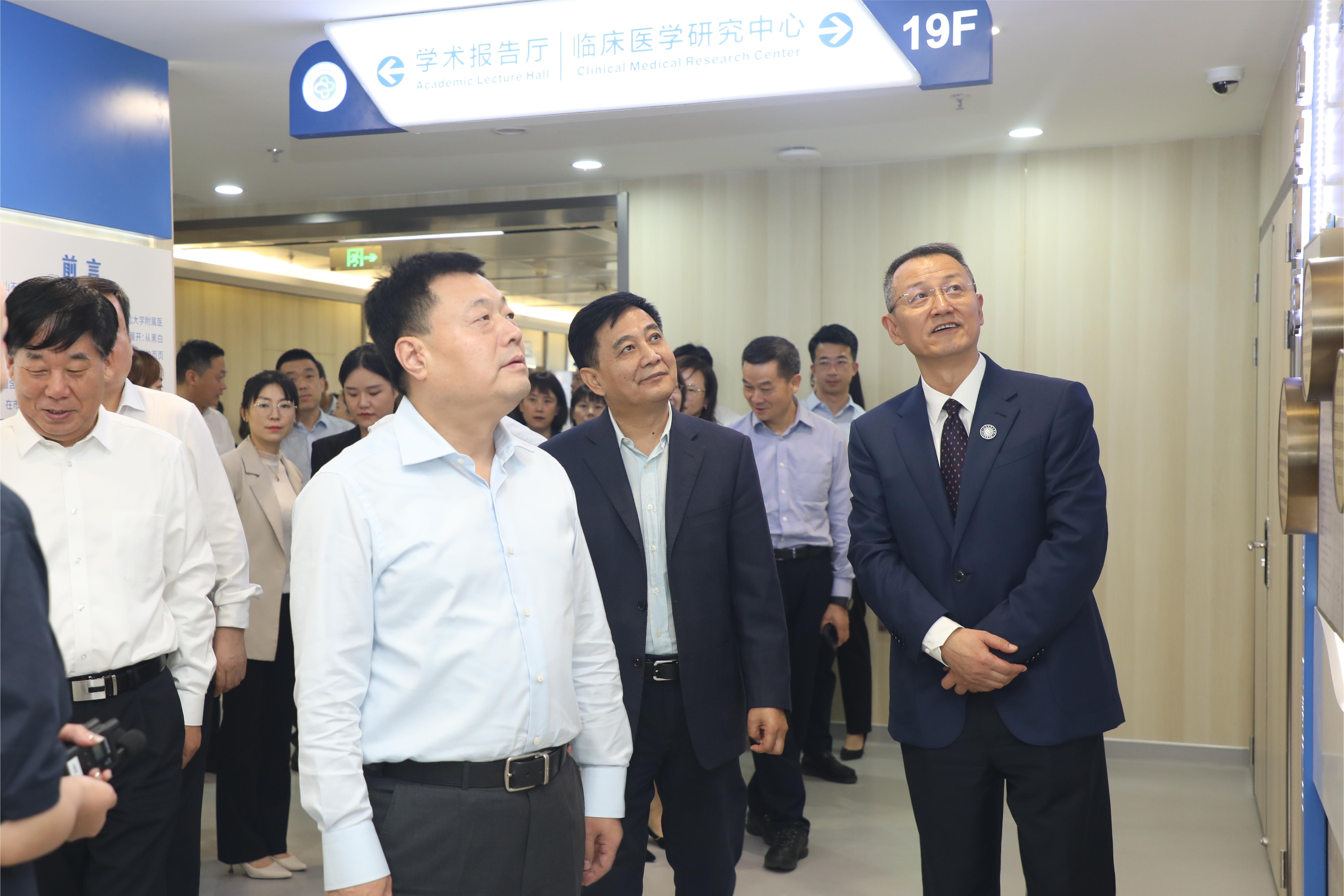 仪式结束后,王亚杰与嘉宾一同参观住院综合大楼,实地查看就医环境,并看望了在附属医院进行临床实习的2019级临床医学专业实习学生,同科室主任、带教老师以及实习同学深入交流。