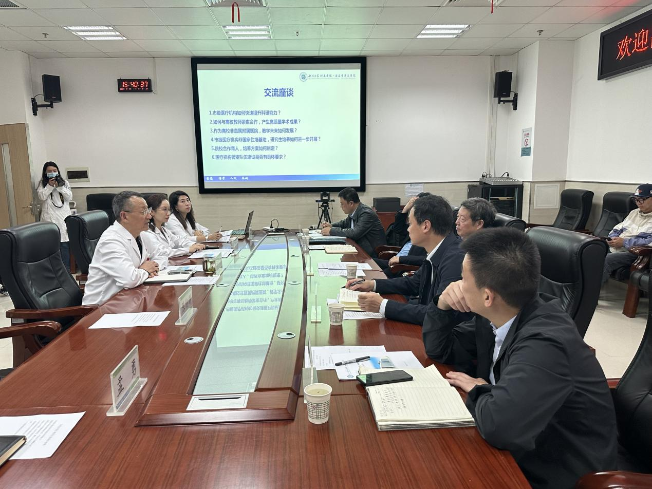 吕兆丰、王亚杰一行先后调研了YABO鸭脖官网第一医院、附属医院和附属西安国际医学中心医院,就各附属医院发展模式、校院一体化建设、临床教学科研、规培基地设置和学科布局等工作进行考察指导。