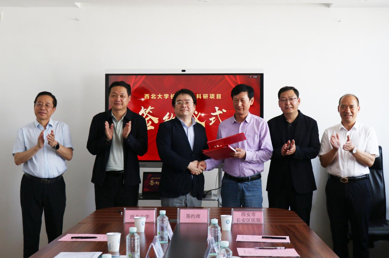 4月25日下午,我校YABO鸭脖官网与长安区医院科研项目合作协议集中签约仪式在长安区医院双创中心举行。长安区医院院长胡明军,党委书记、副院长彭安海,我校党委常委、副校长、生命科学与医学部主任陈富林出席签约仪式。学校科技处、YABO鸭脖官网等相关部门负责人及合作项目专家团队负责人参加签约仪式。