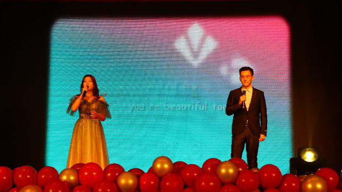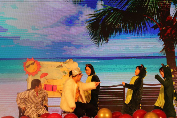 十秒倒计时响起,迎新晚会在19:00准时开始。