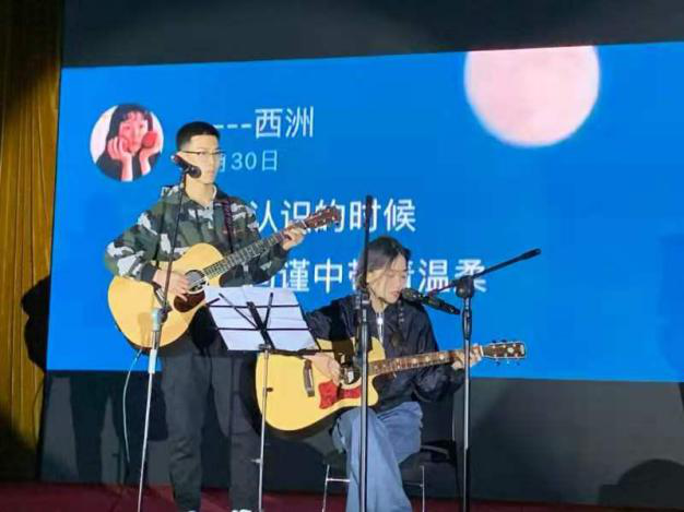 音乐是晚会永恒的主题,由李奕衡等同学带来的乐队民谣《我们的时光》。民谣总能很容易让人产生共鸣。在这美好的年纪,我们就尽情的创造美好回忆吧!