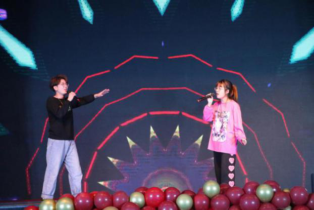 接下来,安伟东老师带来了歌曲《爱就一个字》,歌曲甜蜜,曲调温柔,尽显铁汉柔情,带动了全场的氛围。