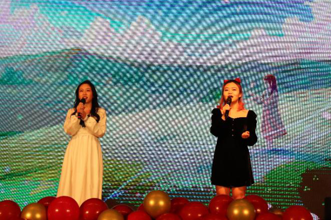 欣赏完民谣后,让我们来感受一下老师们的魅力。由杨涛、魏宁、孟庆彬、王静、李梦雨等老师带来的诗朗诵《山河无恙》,抑扬顿挫,气势磅礴,词句间歌颂着祖国的大好河山,致敬着伟大的抗疫英雄们。