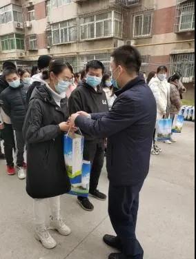 在与学生见面后,各位老师亲手将分配好的防疫健康包与水果发放给每一位假期依旧坚持在学习科研一线的同学们。
