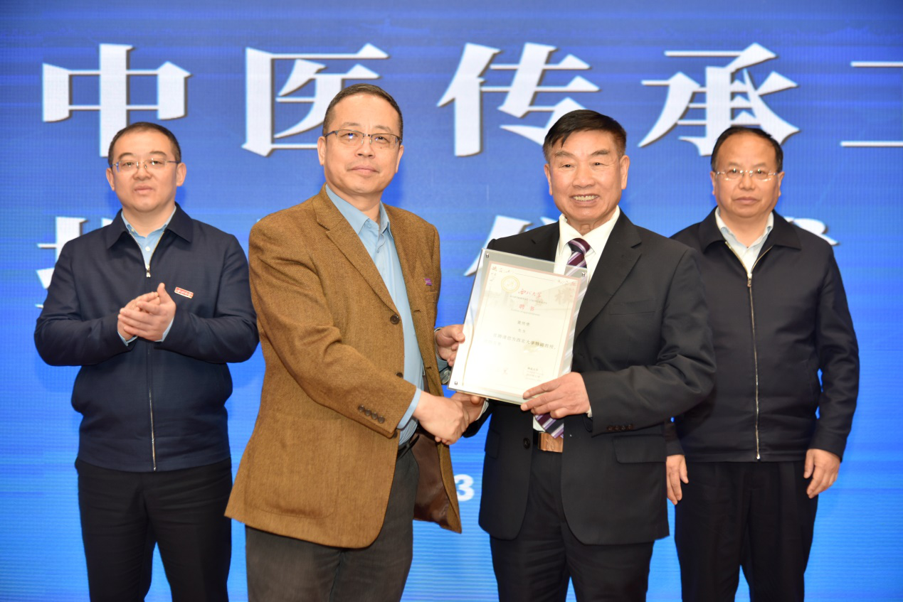 仪式上,我校YABO鸭脖官网负责人为黄传贵教授颁发聘书,铜川市卫健委负责人宣读设立黄传贵中医传承工作室的决定。常江与李荣共同为黄传贵中医传承工作室揭牌。仪式结束后,黄传贵教授为与会人员作了学术报告。