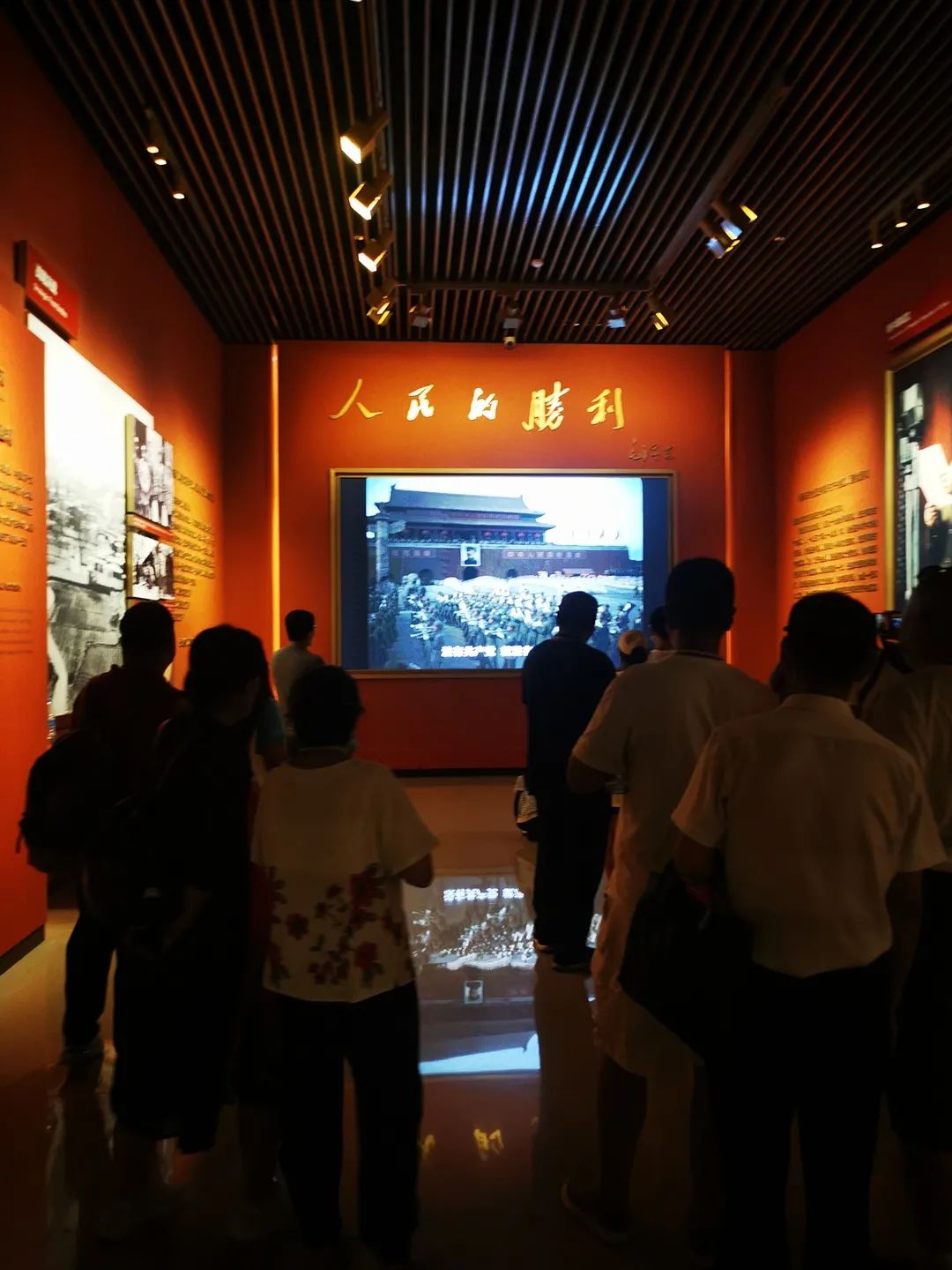 进入纪念馆,正对大门的是毛泽东、周恩来等领导人和来自五湖四海的军人、工人、农民以及国际友人汇聚在一起的雕像,体现了党始终与群众密切联系在一起。雕像人物身上破旧又厚重的衣物,脸上被风雨打磨的痕迹,瞬间将同学们带回到那个风雨飘摇的年代,先辈们眼中燃烧着革命必胜的火焰,脚下迈出坚定的步伐,用勇往直前的坚定信念深深感染着每一位队员。