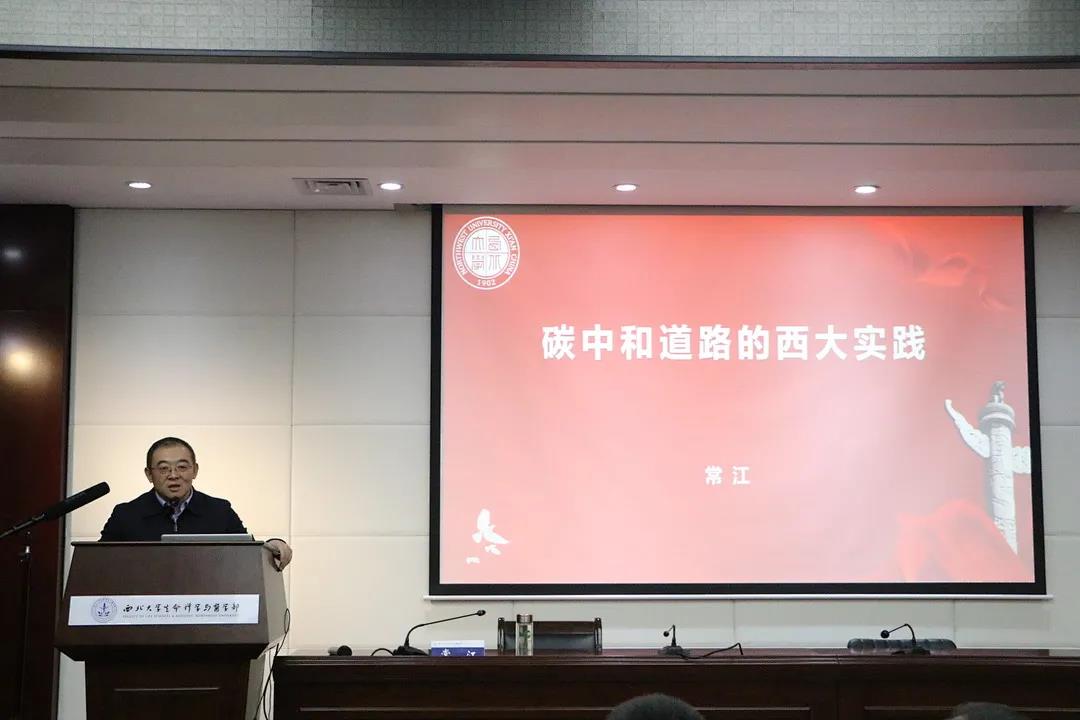 为贯彻落实中省“双碳”工作相关意见精神,展现YABO鸭脖官网推动构建人类命运共同体的责任担当,引导师生聚焦“四个面向”,夯实理想信念,提升服务国家战略意识,11月9日下午,校党委常委、副校长,学校思想政治理论课兼职教师常江研究员为生命科学与医学部师生讲授了题为“碳中和道路的西大实践”专题思政课,此次思政课由张宇书记主持,学部班子成员、师生代表共同听讲。