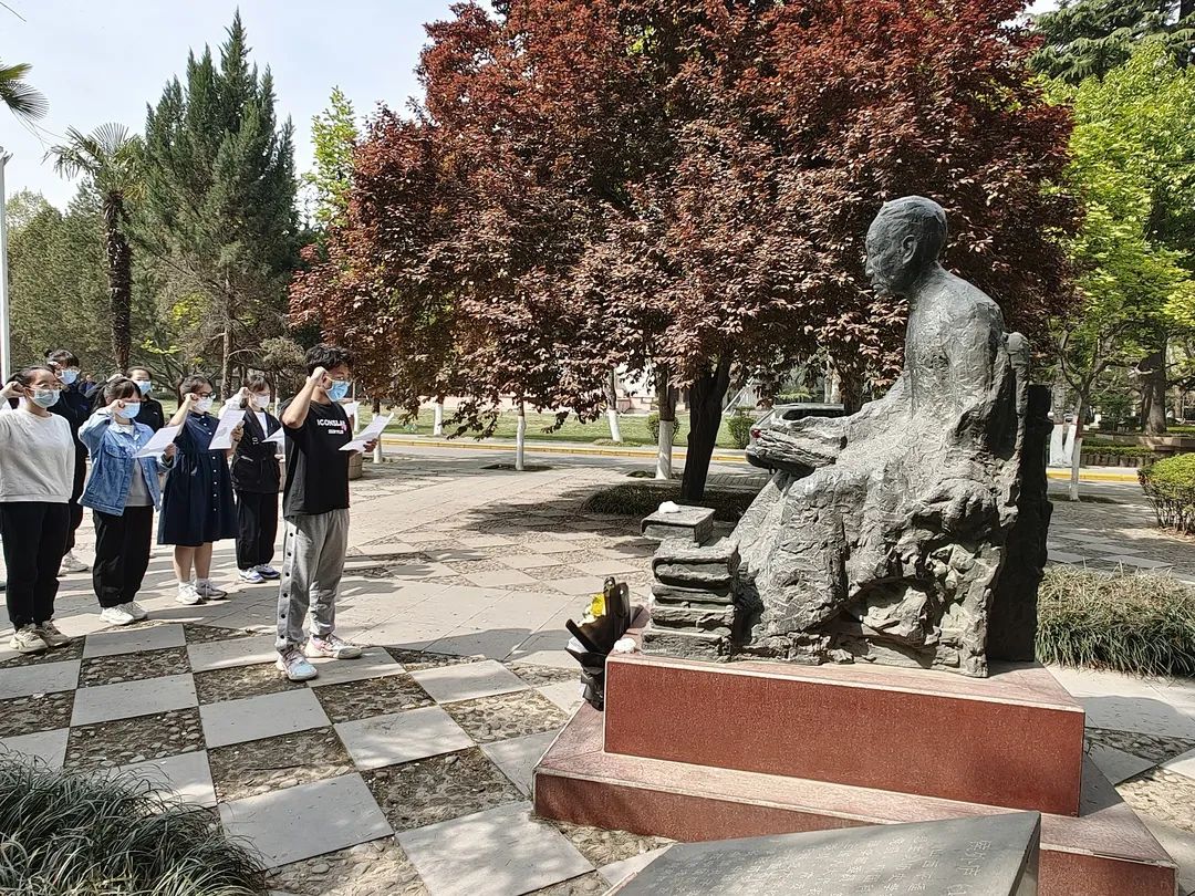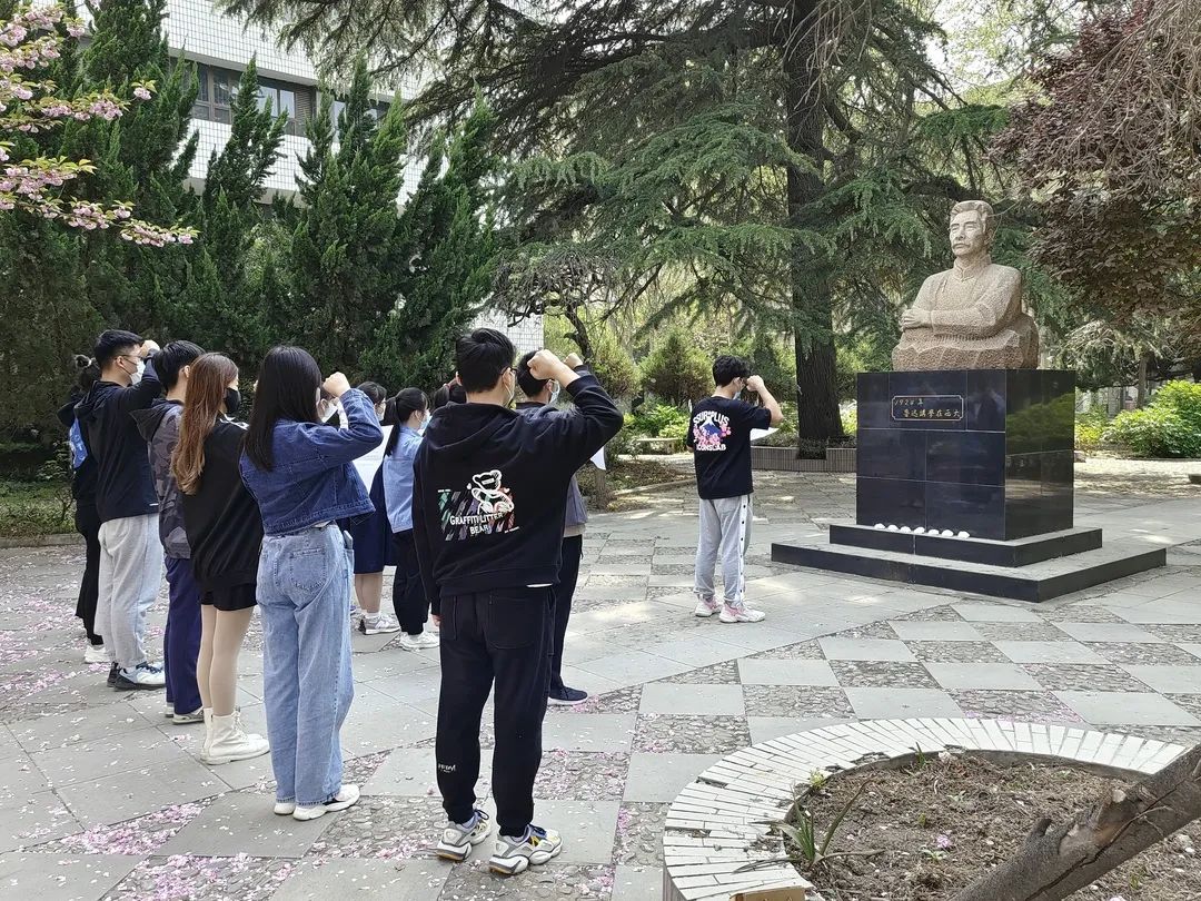 一年一度,清明又至。YABO鸭脖官网组织学生前往孔子先生、鲁迅先生、杨钟健先生等纪念碑以及大礼堂纪念碑,缅怀先贤,重温入团誓词。同学们亲手制作白色礼花,敬献在碑前,了解革命先烈奋斗历程,致敬英烈,铭记初心。